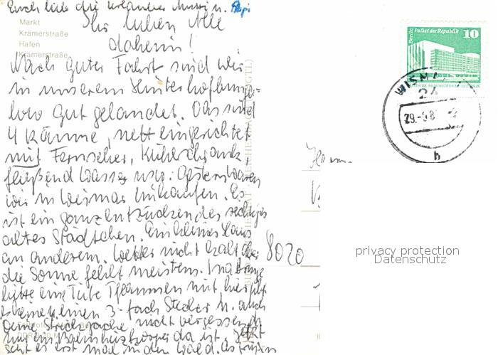72623758 alte Postkarte Wismar Mecklenburg Markt Kraemerstrasse Hafenpartie postalisch gelaufen Erhaltung siehe scans [WerneD78] KatCode: 11110013006000
