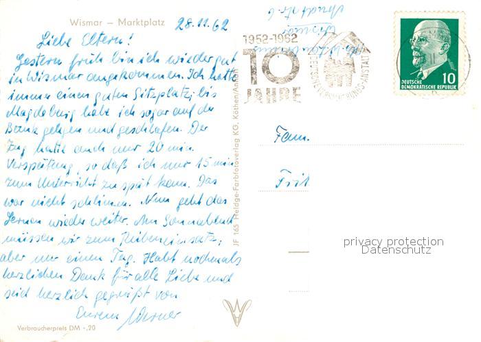 73012073 alte Postkarte Wismar Mecklenburg Marktplatz Brunnen postalisch gelaufen Erhaltung siehe scans [WerneD78] KatCode: 11110013006000