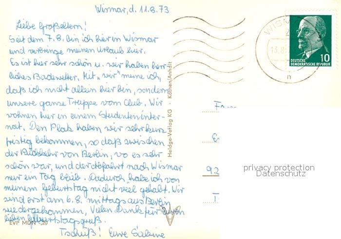 73293918 alte Postkarte Wismar Mecklenburg Marktplatz mit Wasserkunst postalisch gelaufen Erhaltung siehe scans [LiesaD40] KatCode: 11110013006000