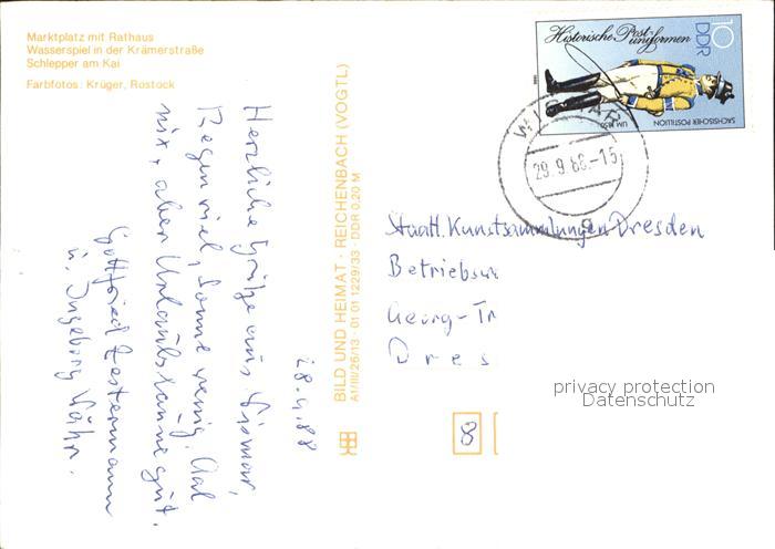 72370758 alte Postkarte Wismar Mecklenburg Marktplatz Rathaus Wasserspiel Kraemerstrasse Schlepper Kai postalisch gelaufen Erhaltung siehe scans KatCode: 11110013006000