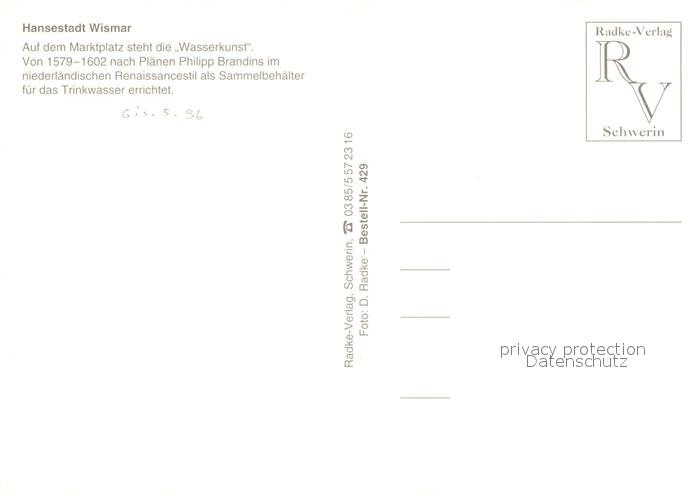 73246920 Wismar Mecklenburg Marktplatz Wasserkunst postalisch nicht gelaufen Erhaltung siehe scans [KathaD81] KatCode: 11110013006000
