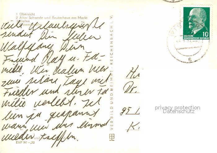 72704432 alte Postkarte Wismar Mecklenburg Panorama Alter Schwede und Reuterhaus am Markt Hafen Kraemerstrasse postalisch gelaufen Erhaltung siehe scans [FriedD77] KatCode: 11110013006000
