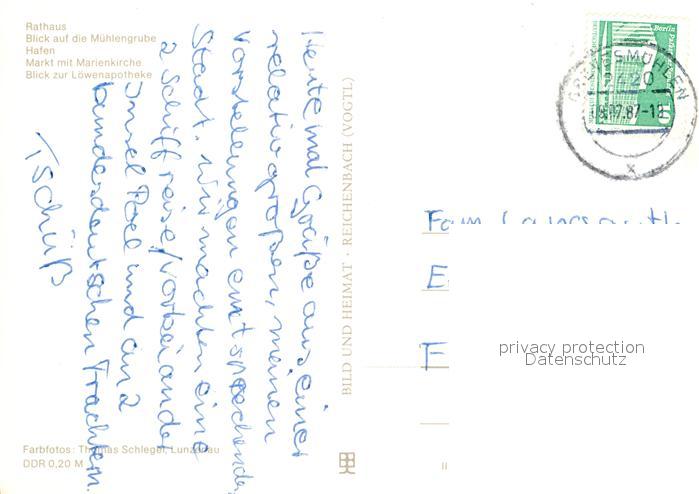 73061290 alte Postkarte Wismar Mecklenburg Rathaus Muehlengrube Hafen Markt Marienkirche Loewenapotheke postalisch gelaufen Erhaltung siehe scans [FriedD77] KatCode: 11110013006000