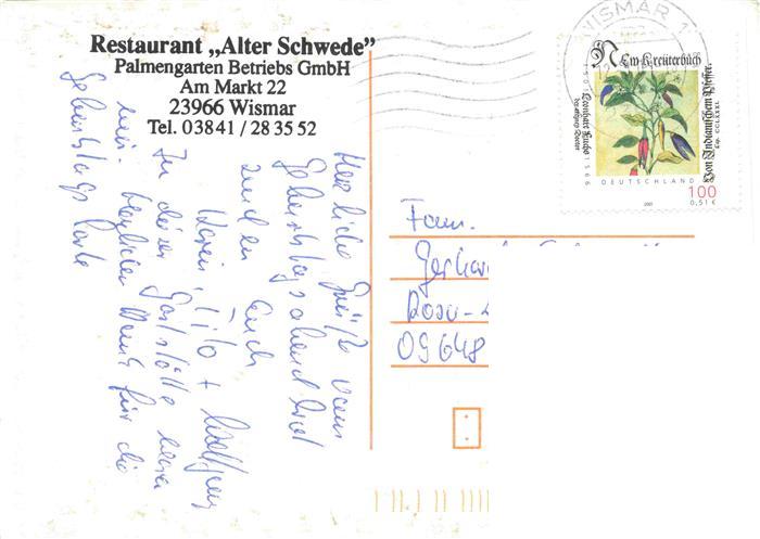 74141907 alte Postkarte WISMAR Mecklenburg Restaurant Alter Schwede postalisch gelaufen Erhaltung siehe scans [IrynaD87] KatCode: 11110013006000