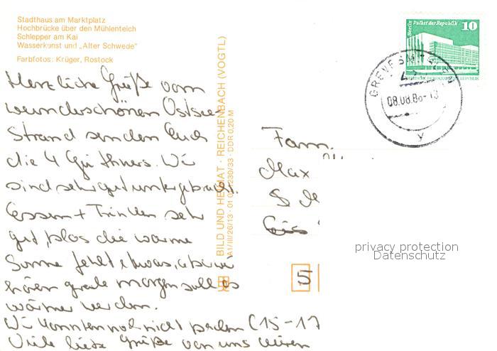 72972847 alte Postkarte Wismar Mecklenburg Stadthaus Marktplatz Hochbruecke Muehlenteich Schlepper Kai Wasserkunst Alter Schwede postalisch gelaufen Erhaltung siehe scans [FriedD77] KatCode: 11110013006000