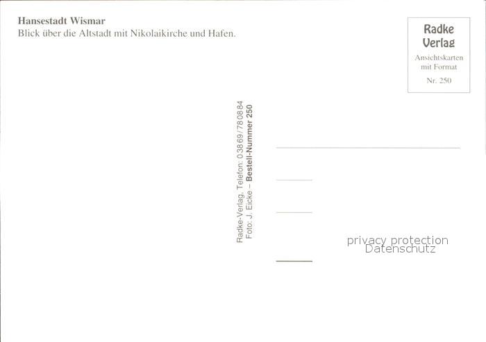 72235837 Wismar Mecklenburg Vorpommern Altstadt Nikolaikirche Hafen Hansestadt Fliegeraufnahme postalisch nicht gelaufen Erhaltung siehe scans KatCode: 11110013006000