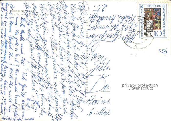 72114922 alte Postkarte Wismar Mecklenburg Vorpommern Hochhaus am Platz des Friedens postalisch gelaufen Erhaltung siehe scans KatCode: 11110013006000