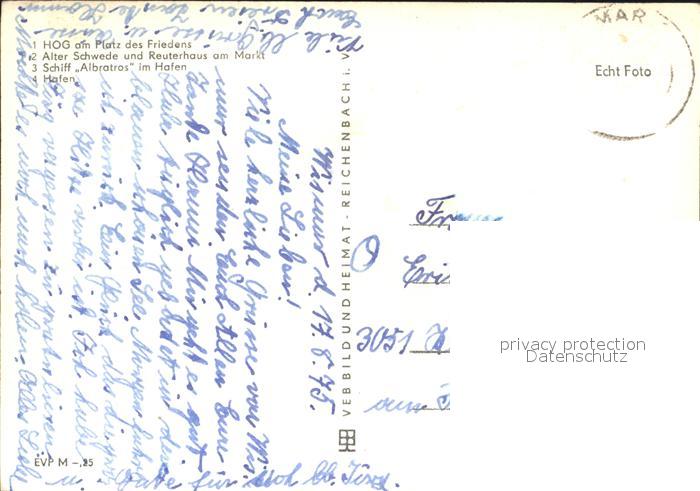 72119231 alte Postkarte Wismar Mecklenburg Vorpommern HOG am Platz des Friedens postalisch gelaufen Erhaltung siehe scans KatCode: 11110013006000