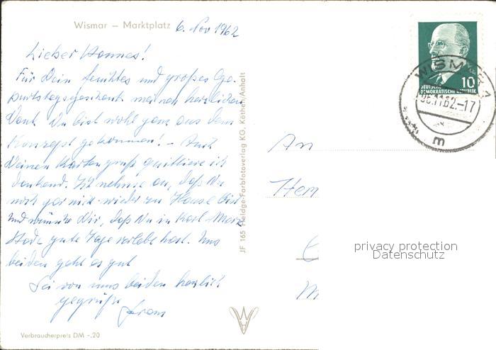 72139720 alte Postkarte Wismar Mecklenburg Vorpommern Marktplatz Pavillon postalisch gelaufen Erhaltung siehe scans KatCode: 11110013006000