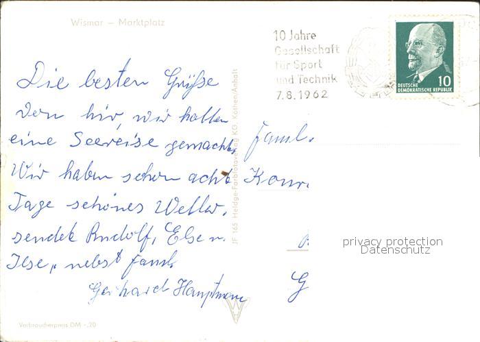 72132249 alte Postkarte Wismar Mecklenburg Vorpommern Marktplatz postalisch gelaufen Erhaltung siehe scans KatCode: 11110013006000