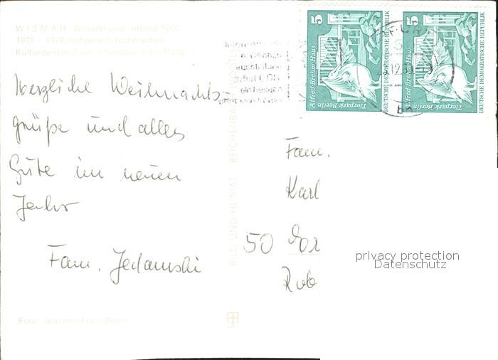 72115615 alte Postkarte Wismar Mecklenburg Vorpommern Wasserkunst postalisch gelaufen KatCode: 11110013006000