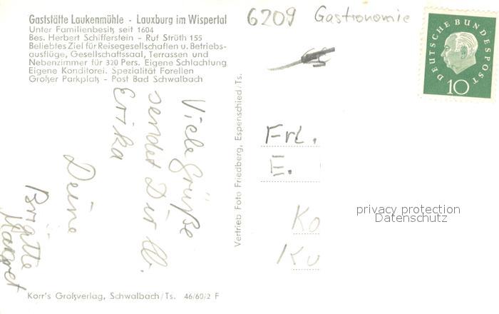 73696883 Wispertal Gaststaette Laukenmuehle- Lauxburg postalisch nicht gelaufen Erhaltung siehe scans [LiesaD40] KatCode: 11110006439010