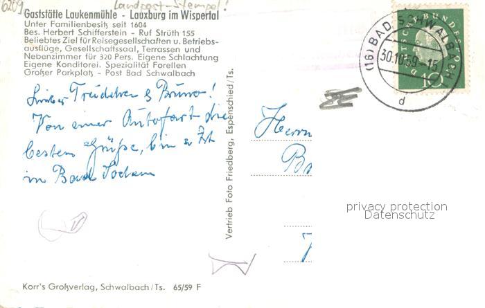 73696882 alte Postkarte Wispertal Gaststaette Laukenmuehle-Lauxburg postalisch gelaufen Erhaltung siehe scans [LiesaD40] KatCode: 11110006439010