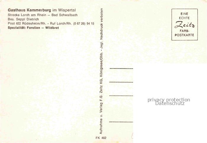 74037824 Wispertal Lorch Rheingau Hessen Gasthaus Kammerburg postalisch nicht gelaufen Erhaltung siehe scans [WerneD78] KatCode: 11110006439010