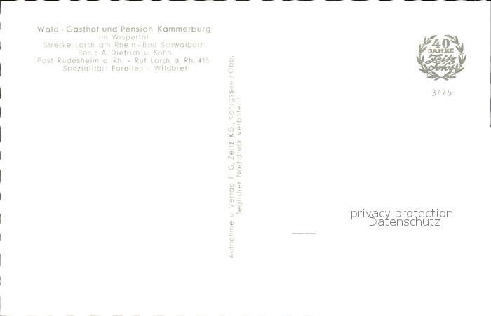 72096236 Wispertal Wald Gasthof und Pension Kammerburg postalisch nicht gelaufen Erhaltung siehe scans KatCode: 11110006439010