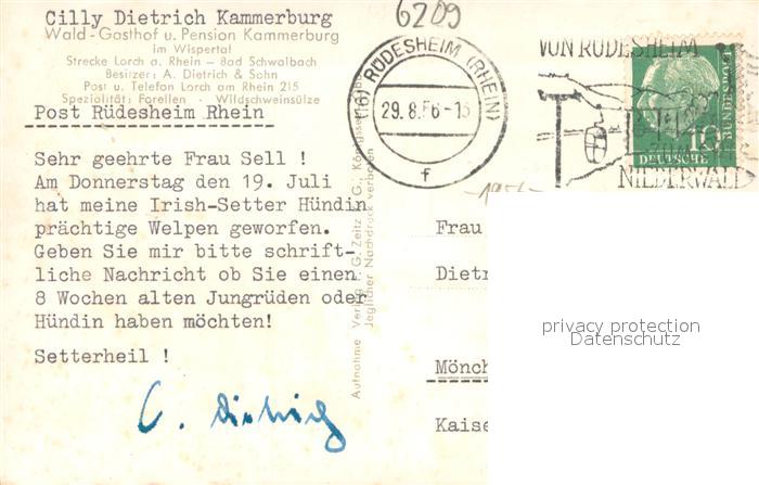 73696886 alte Postkarte Wispertal Wald- Gasthof und Pension Kammerburg postalisch gelaufen Erhaltung siehe scans [LiesaD40] KatCode: 11110006439010