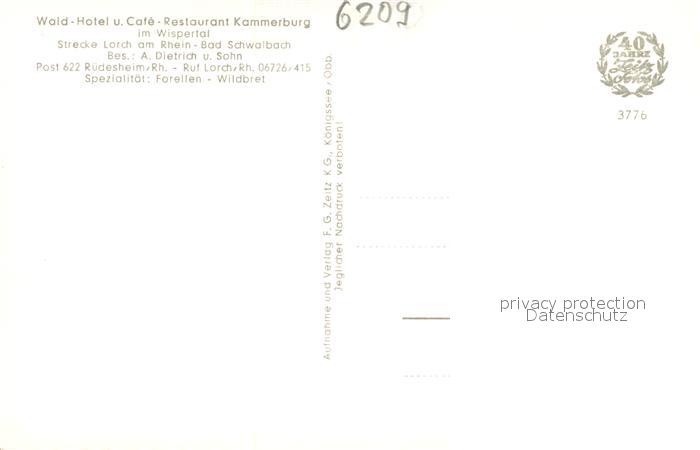 73696888 Wispertal Wald- Hotel und Cafe- Restaurant Kammerburg postalisch nicht gelaufen Erhaltung siehe scans [LiesaD40] KatCode: 11110006439010