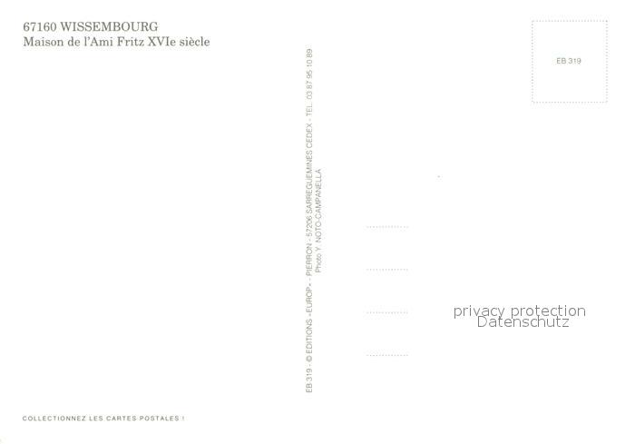 13628100 Wissembourg Maison de l’Ami Fritz postalisch nicht gelaufen Erhaltung siehe scans [WerneD78] Wern Katcode 11170067767544