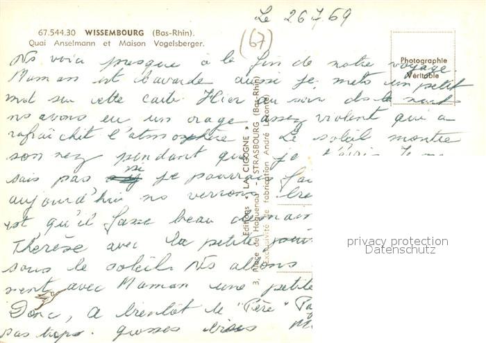 13236447 Wissembourg Quai Anselmann et Maison Vogelsberger postalisch nicht gelaufen Erhaltung siehe scans [FriedD77] KatCode: 11170067767544