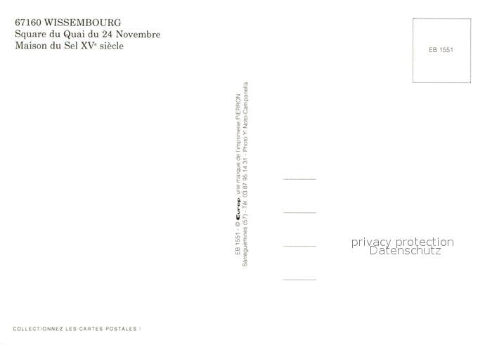 13607143 Wissembourg Square du Quai du 24 Novembre Maison du Sel XVe siècle postalisch nicht gelaufen Erhaltung siehe scans [FriedD77] KatCode: 11170067767544