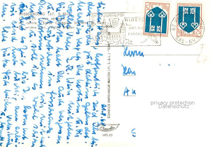 13721929 Wissembourg Weissenburg Alsace Fliegeraufnahme l Eglise St-Jean postalisch gelaufen Erhaltung siehe scans [LiesaD40] carte postale Lies Katcode 11170067767544