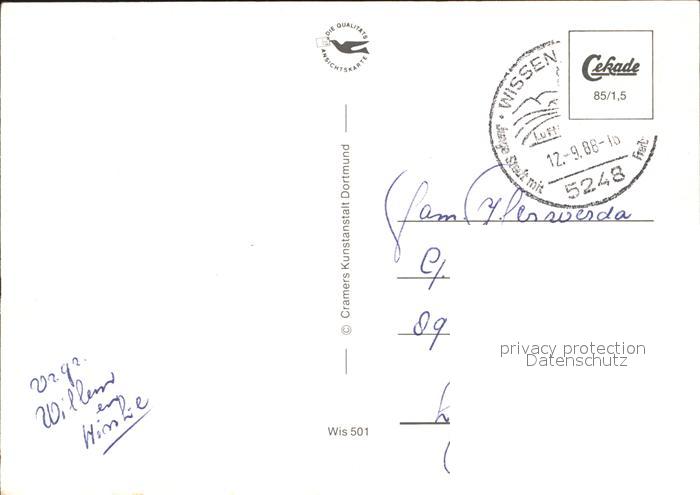 72136888 alte Postkarte Wissen Sieg Marktplatz Schloss Schoenstein Steinbuschanlage postalisch gelaufen Erhaltung siehe scans KatCode: 11110007132117