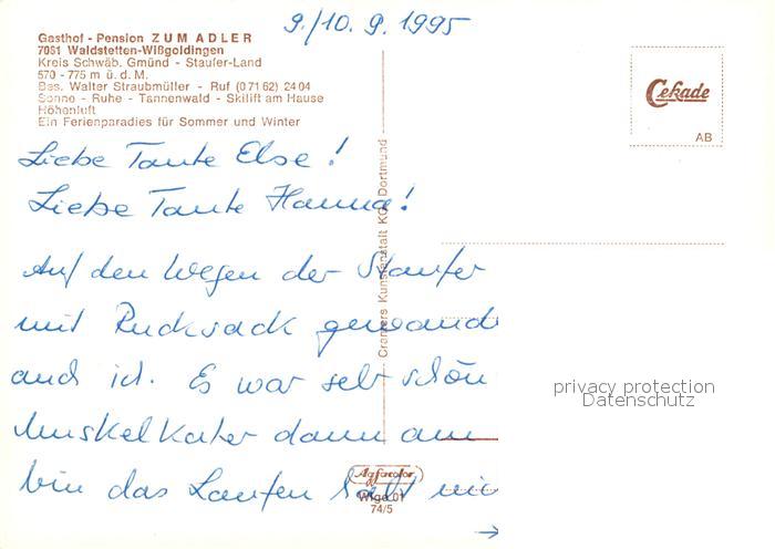 73568834 Wissgoldingen Gasthof Pension Zum Adler postalisch nicht gelaufen Erhaltung siehe scans [FriedD77] KatCode: 11110008136079