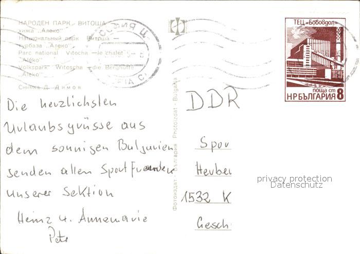 old postcard Witoscha Gebirge Berghuette Aleko Nationalpark postalisch gelaufen Erhaltung siehe scans