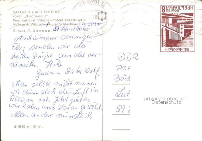 old postcard Witoscha Gebirge Hotel Schtastliveza postalisch gelaufen Erhaltung siehe scans