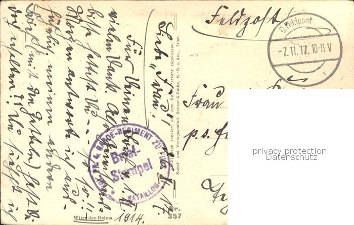 11916792 carte postale Witry-les-Reims Ruinen 1. Weltkrieg Grande Guerre postalisch gelaufen Feldpost Erhaltung siehe scans KatCode: 11170051351662
