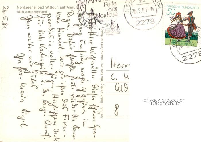 73768285 alte Postkarte Wittduen Amrum Blick zum Kniepsand postalisch gelaufen Erhaltung siehe scans [WerneD78] KatCode: 11110001054160