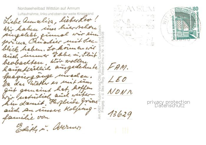 73011133 alte Postkarte Wittduen Amrum Fliegeraufnahme mit Kniepsand postalisch gelaufen Erhaltung siehe scans [WerneD78] KatCode: 11110001054160