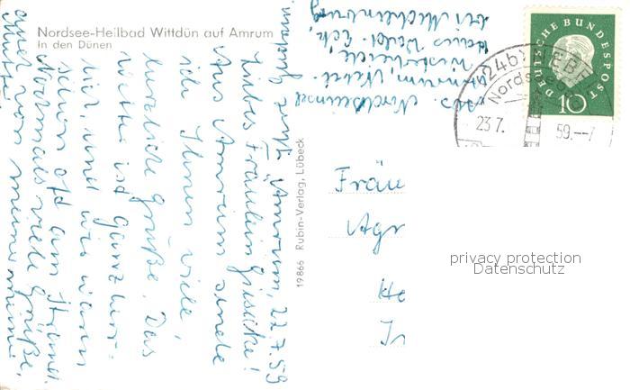 73810251 alte Postkarte Wittduen Amrum In den Duenen postalisch gelaufen Erhaltung siehe scans [WerneD78] KatCode: 11110001054160