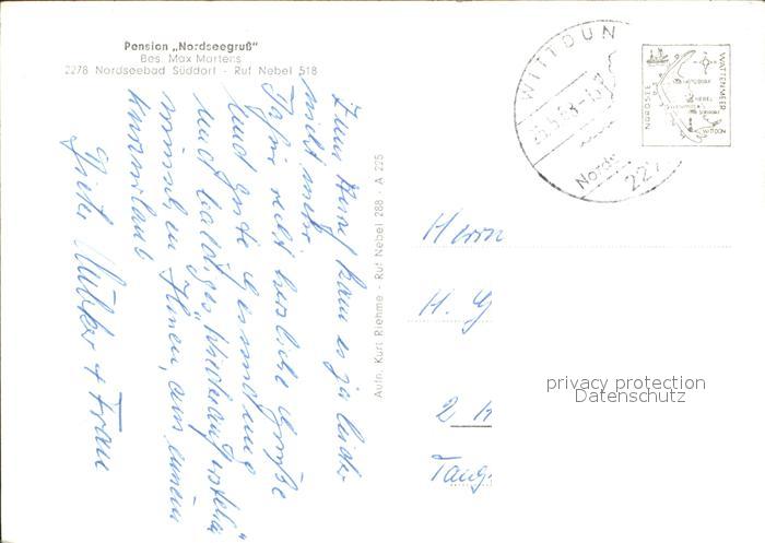 72088395 alte Postkarte Wittduen Nordseebad Amrum Pension Nordeegruss postalisch gelaufen Erhaltung siehe scans KatCode: 11110001054160