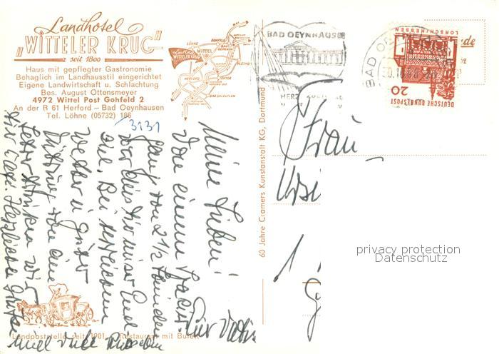 73657511 alte Postkarte Wittel Landhotel Witteler Krug Restaurant Theke postalisch gelaufen Erhaltung siehe scans [FriedD77] KatCode: 11110005758024