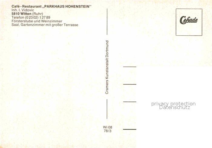 72658187 Witten Hohenstein Cafe Parkhaus Hohenstein postalisch nicht gelaufen Erhaltung siehe scans [AndreD76] KatCode: 11110005954036
