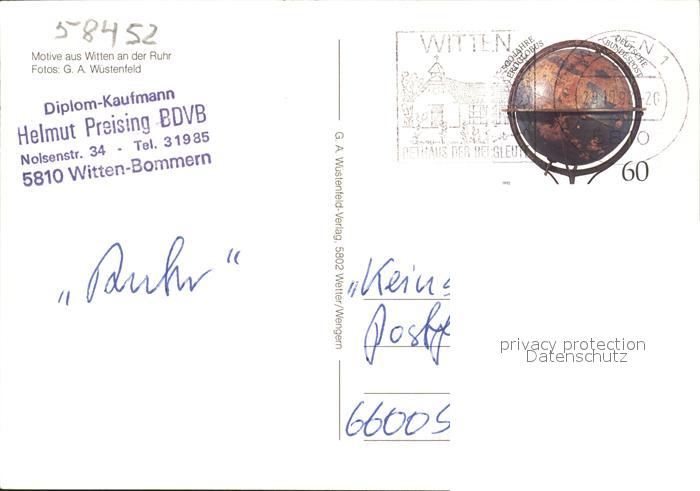 72145482 alte Postkarte Witten Ruhr postalisch gelaufen Erhaltung siehe scans KatCode: 11110005954036