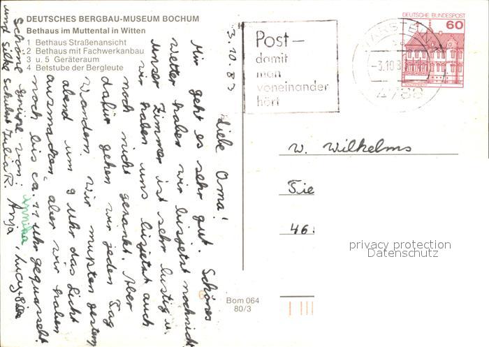72210741 alte Postkarte Witten Ruhr Bethaus im Muttental Strassenansicht Fachwerkanbau Geraeteraum Betstube der Bergleute postalisch gelaufen Erhaltung siehe scans KatCode: 11110005954036