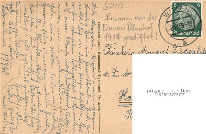 73698589 alte Postkarte Witten Ruhr Hohenstein Doennhofbrunnen mit Parkpartie postalisch gelaufen Erhaltung siehe scans [LiesaD40] KatCode: 11110005954036