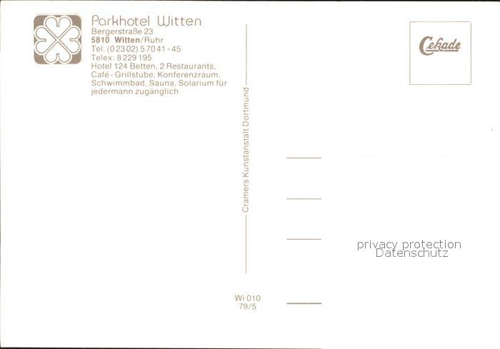 72437639 Witten Ruhr Parkhotel Witten 2 Restaurants Cafe Grillstube Hallenbad postalisch nicht gelaufen Erhaltung siehe scans KatCode: 11110005954036