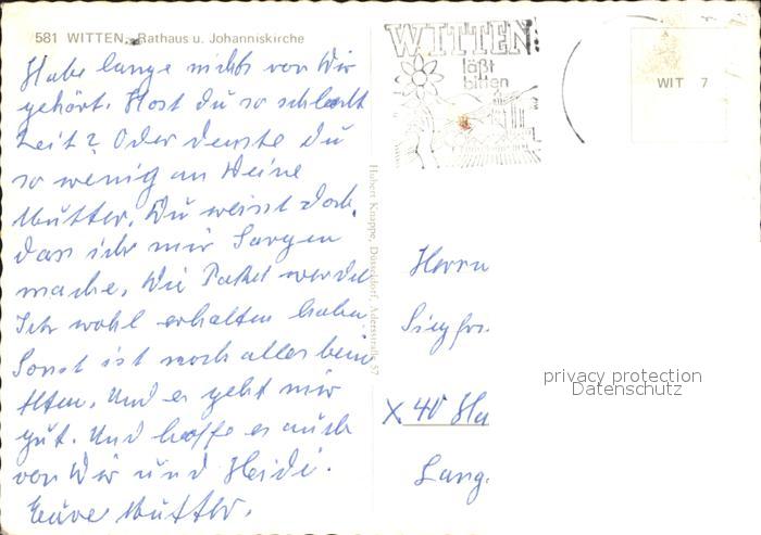 71991650 alte Postkarte Witten Ruhr Rathaus Johanniskirche postalisch gelaufen Erhaltung siehe scans KatCode: 11110005954036
