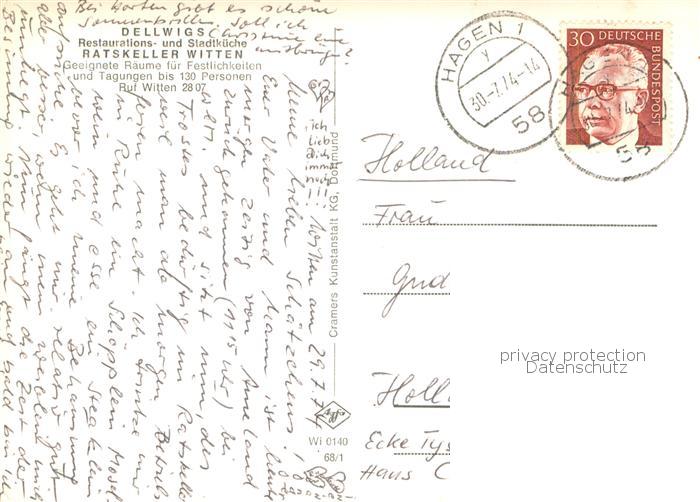 73780339 alte Postkarte Witten Ruhr Ratskeller Restaurant Wappen Kirchturm postalisch gelaufen Erhaltung siehe scans [FriedD77] KatCode: 11110005954036