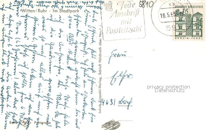 73698606 alte Postkarte Witten Ruhr Stadtpark postalisch gelaufen Erhaltung siehe scans [LiesaD40] KatCode: 11110005954036