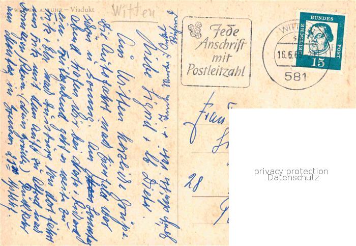 72795884 alte Postkarte Witten Ruhr Viadukt postalisch gelaufen Erhaltung siehe scans [KathaD81] KatCode: 11110005954036