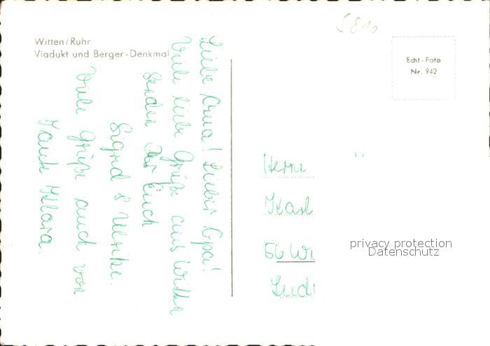72923292 Witten Ruhr Viadukt mit Berger Denkmal postalisch nicht gelaufen Erhaltung siehe scans [WerneD48] KatCode: 11110005954036