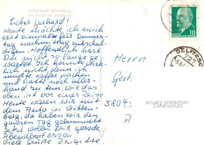 72950815 alte Postkarte Wittenberg Lutherstadt Am Schloss mit Schlosskirche postalisch gelaufen Erhaltung siehe scans [WerneD78] KatCode: 11110015091375