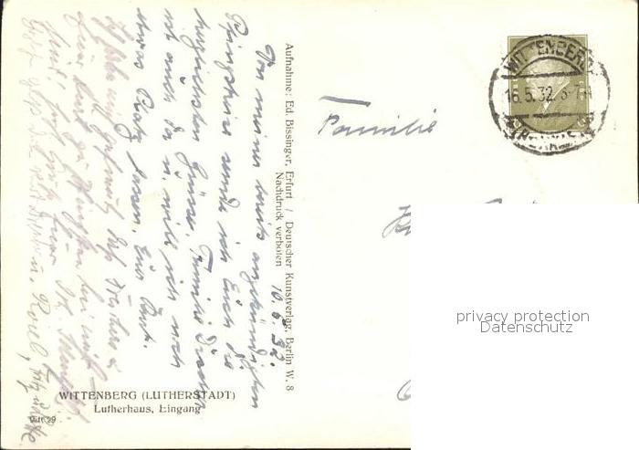 72315004 alte Postkarte Wittenberg Lutherstadt Eingang Lutherhaus postalisch gelaufen Erhaltung siehe scans KatCode: 11110015091375