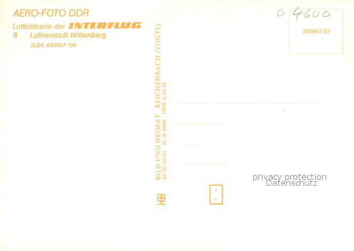 73070338 Wittenberg Lutherstadt Fliegeraufnahme postalisch nicht gelaufen Erhaltung siehe scans [WerneD78] KatCode: 11110015091375