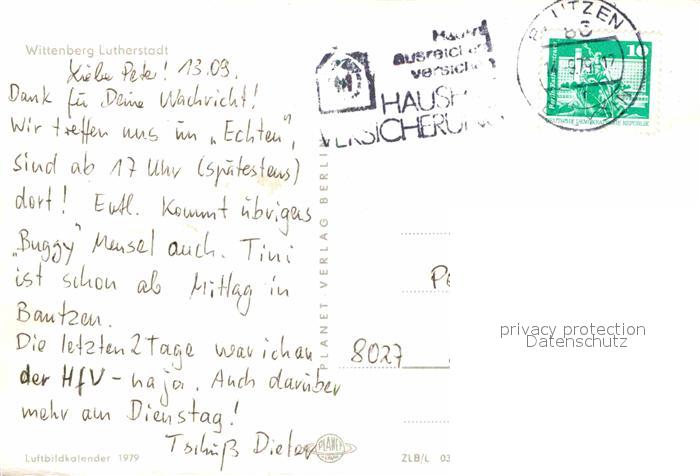 72641160 alte Postkarte Wittenberg Lutherstadt Fliegeraufnahme postalisch gelaufen Erhaltung siehe scans [WerneD78] KatCode: 11110015091375