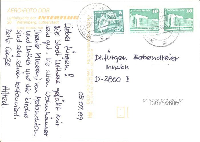 72239898 alte Postkarte Wittenberg Lutherstadt Fliegeraufnahme postalisch gelaufen Erhaltung siehe scans KatCode: 11110015091375